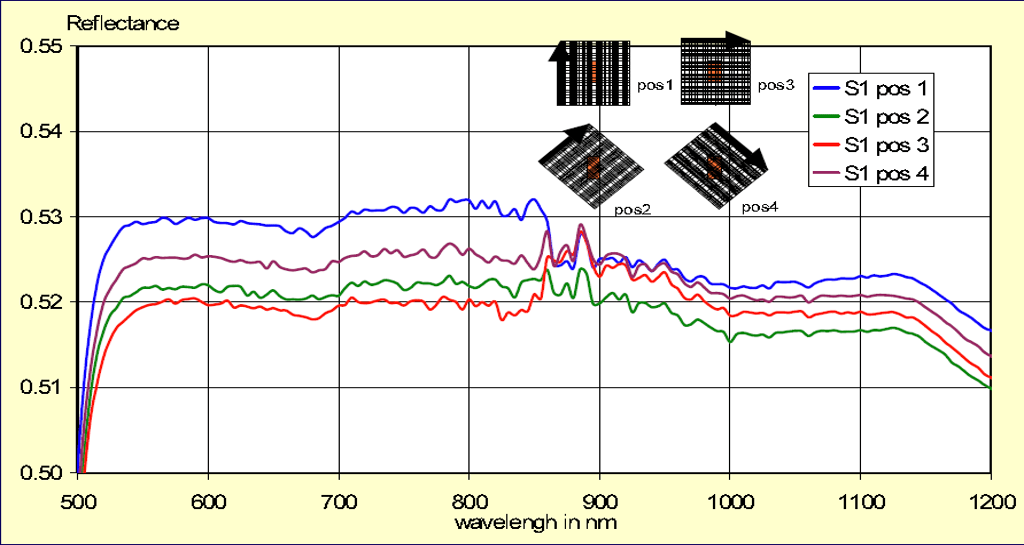 The take home message. Diffuse reflectance samples that have a regular surface texture must be measured at various orientations and across multiple sampling sites on the material, then averaged.