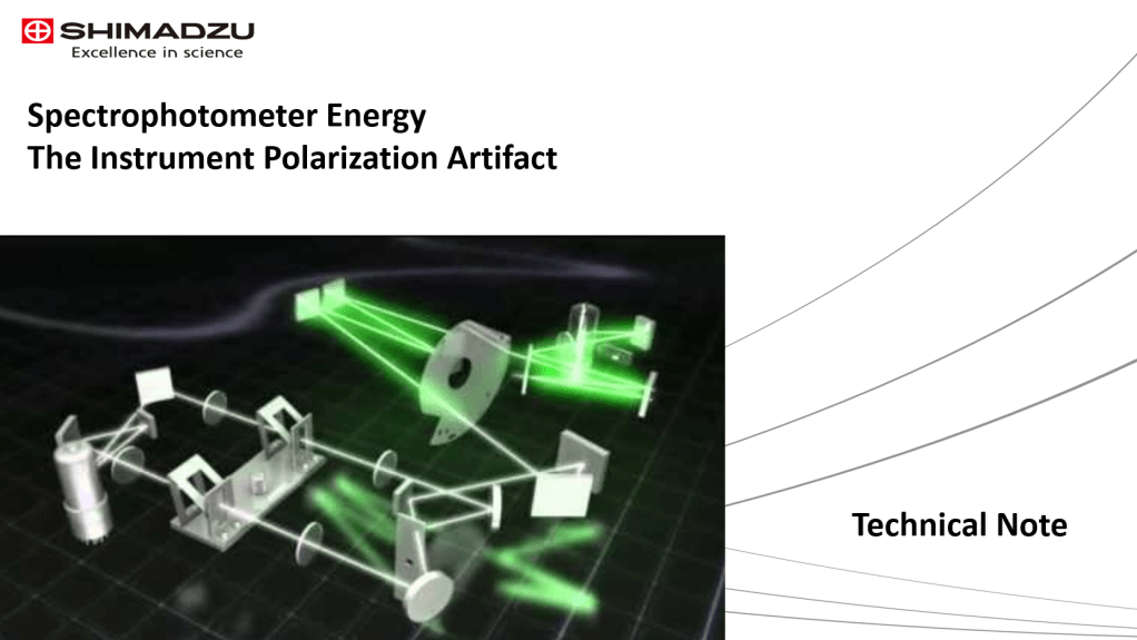 A UV-Vis-NIR spectrophotometer is a powerful tool for investigating absorbance, transmittance and reflectance characteristics of materials. Although we are accustomed to seeing extremely flat baselines in these spectrophotometers, thanks to the implementation of double-beam hardware and baseline correction functions, it is important to understand what the “raw” data looks like in order to investigate if the instrument is performing as expected. In this regard, we investigate the energy profile in a typical scanning spectrophotometer which employs multiple light sources and detectors. In addition, this paper will also briefly touch on the topic of polarization arising from the plane of grating lines in the monochromator of spectrophotometers. All the spectra presented in this brief technical note are single beam energy spectra. The energy mode of a spectrophotometer is usually reserved for instrument service diagnostic purposes. As such, one would not normally use the energy mode to measure a sample. In energy mode the instrument is acting as an uncalibrated radiometer in that it is directly measuring the light intensity of the sample beam radiation on the detector. The energy of the sample beam is measured without any ratioing or comparison with the reference beam. The output energy intensity units are all relative to the gain setting on the detector. One should never infer spectrophotometer sensitivity from just the magnitude of the energy scale. However, if the gain settings are identical for two energy spectra, one can make statements about the amount of energy in each spectra reaching the detector.