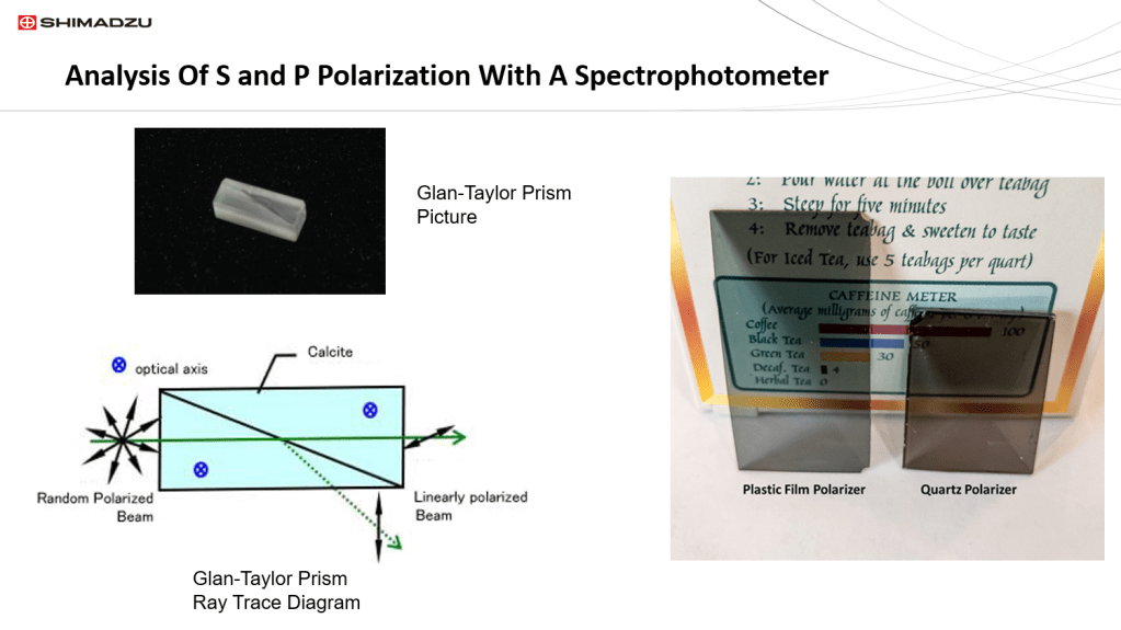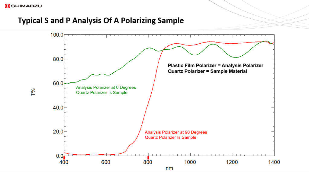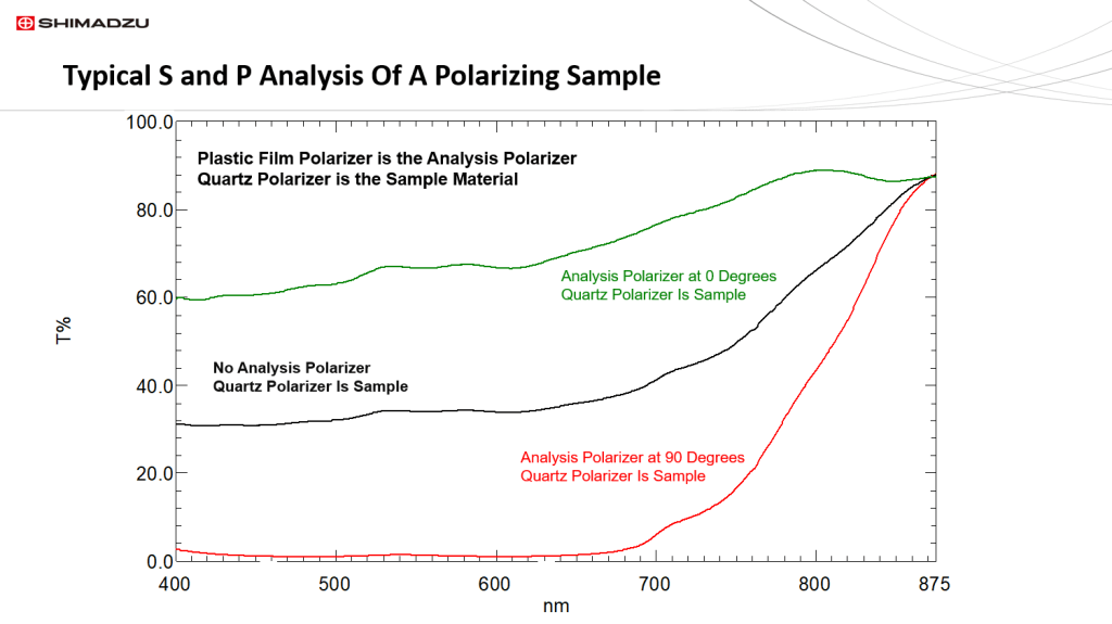 Polarization measurements along with polarization spectra are important applications for the materials characterization application area. In this short post we will discuss the methods used for generating S, P, and random polarization spectra on a typical UV/Vis/NIR spectrophotometer. The spectrophotometer employed in this study is a Shimadzu UV2600 fitted with a 60 mm integrating sphere. The sphere has both a PMT and InGaAs detector for a wavelength range of 200 nm to 1400 nm.